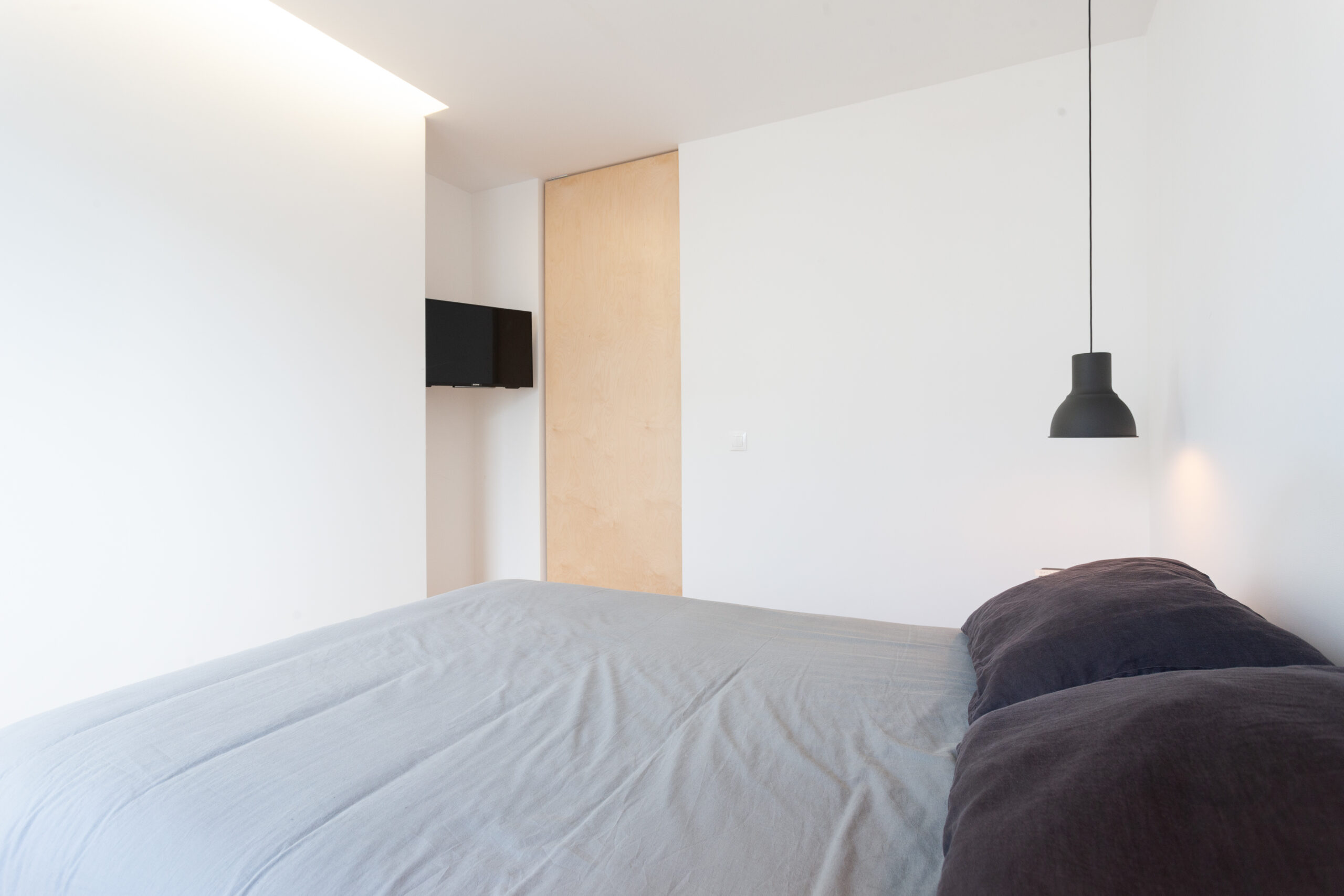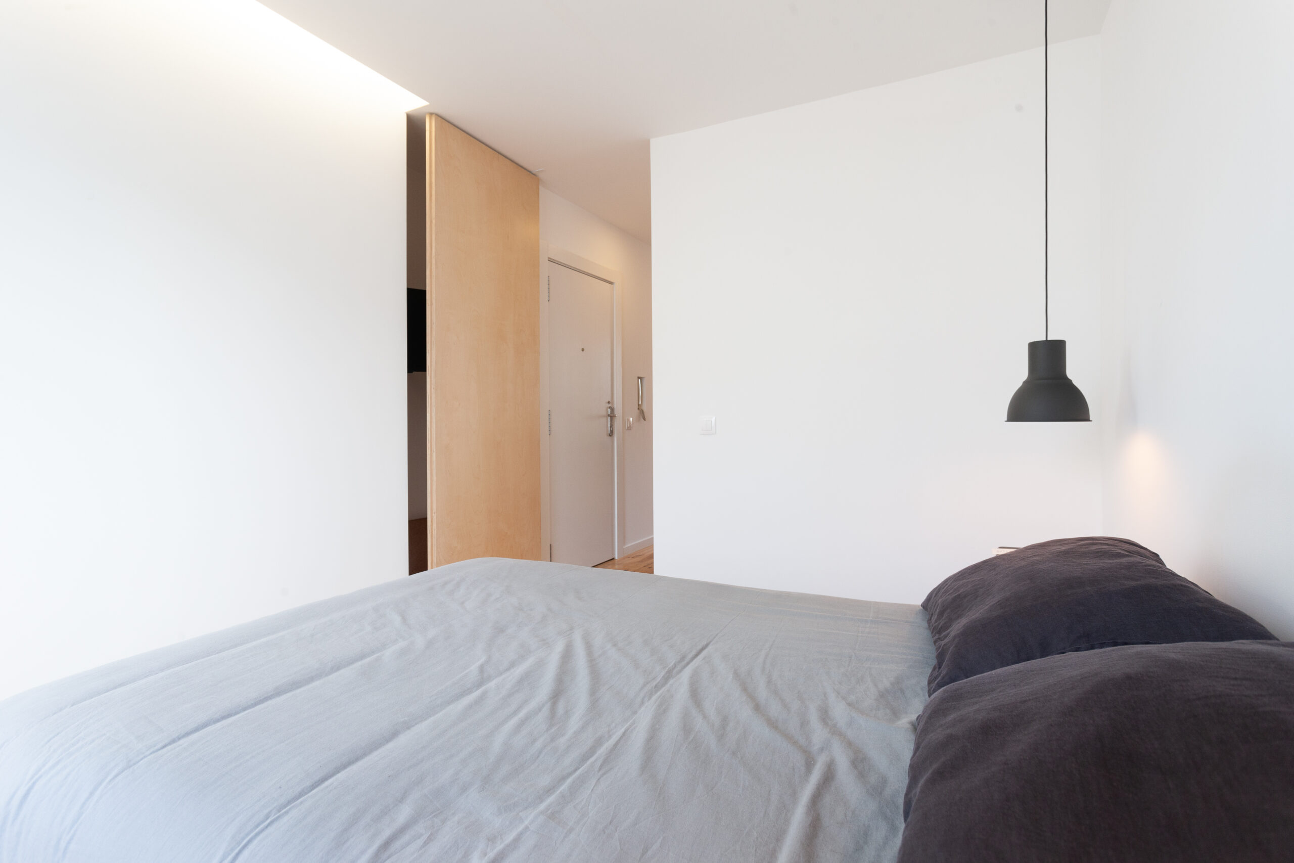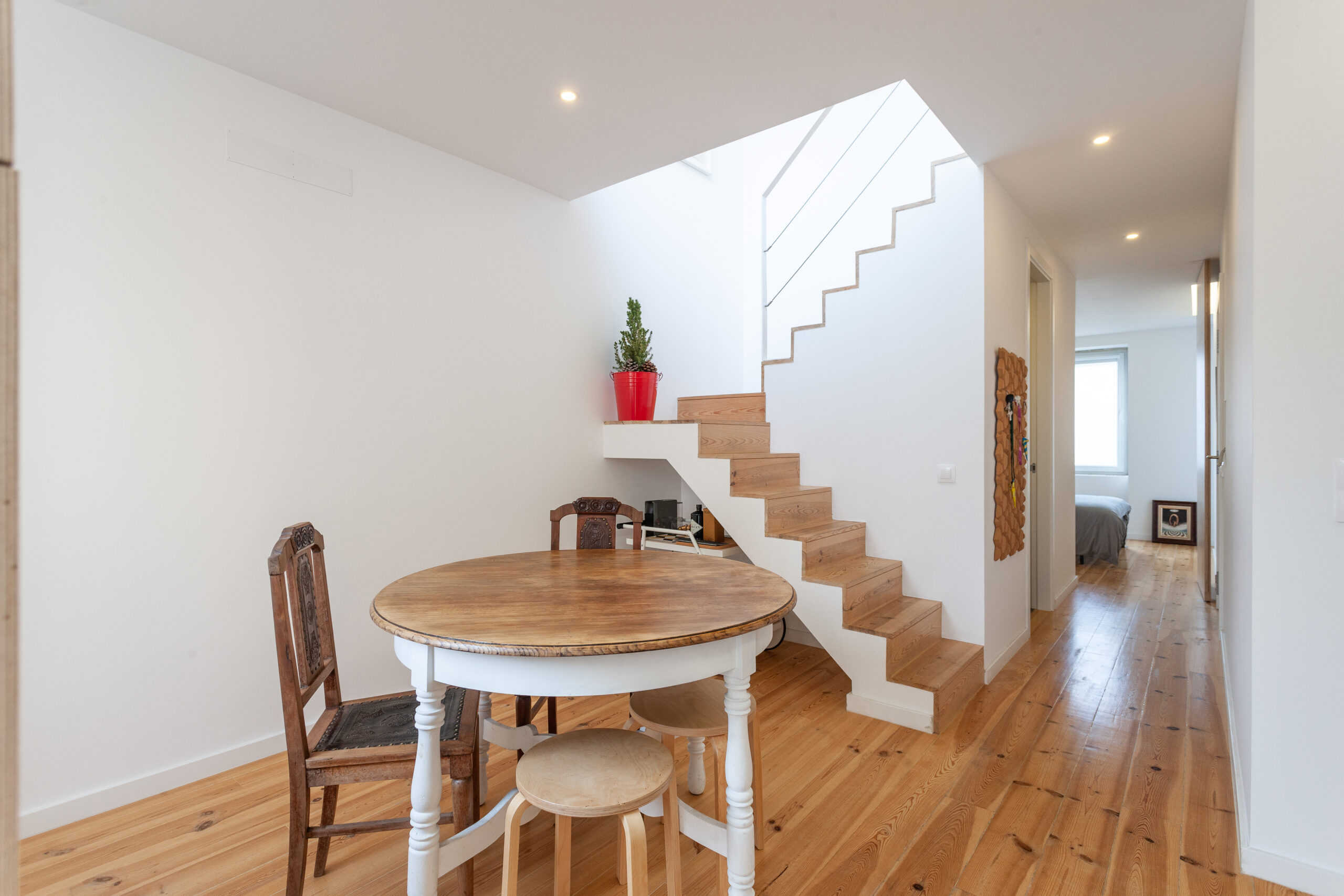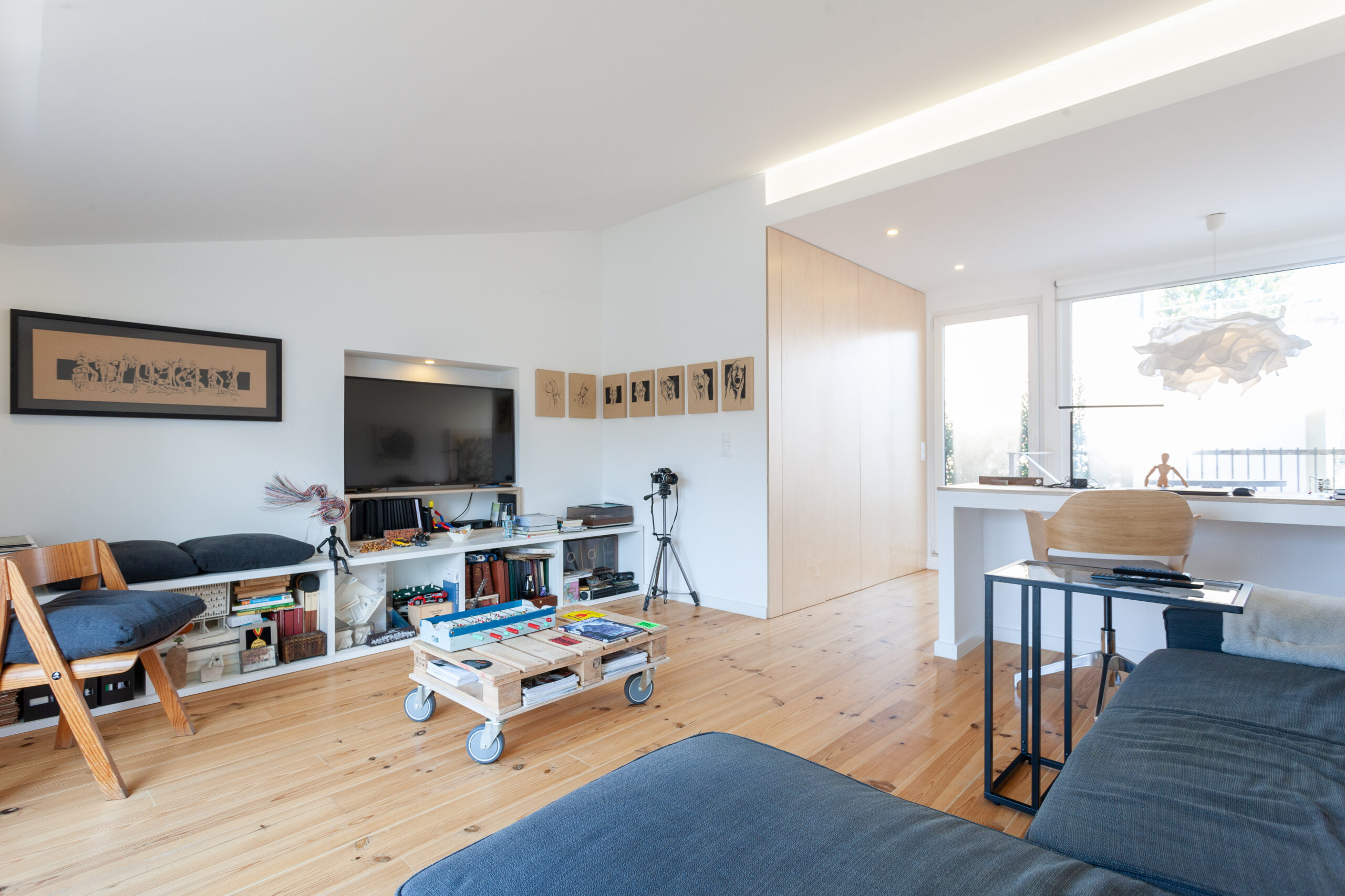 A reabilitação total teve como ponto de partida a ideia de fazer um melhor aproveitamento do pé direito do desvão da cobertura, através da criação de um segundo piso e na transformação do apartamento num espaço com maior fluidez e menos obstáculos, como a instalação de uma porta pivotante ou a omissão de corrimão.