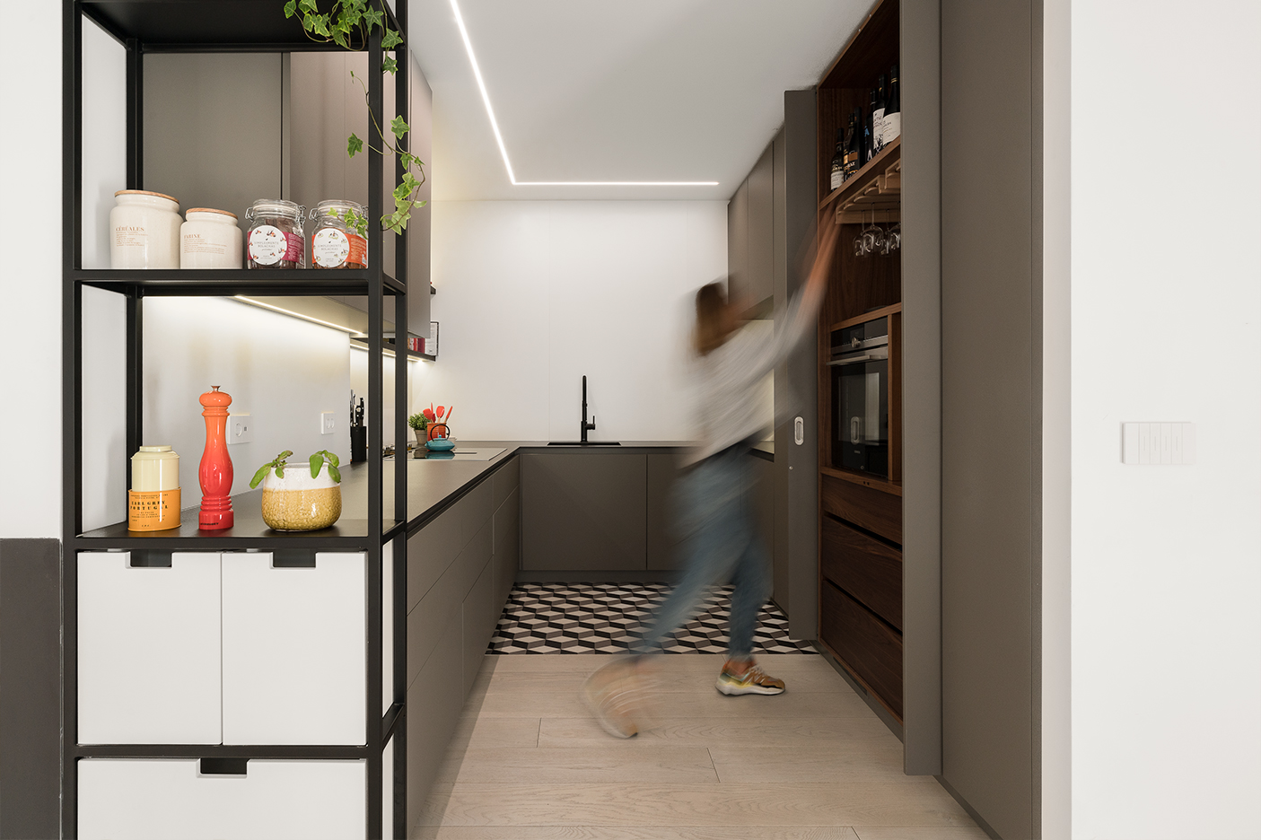 Remodelação de um apartamento em Santa Apolónia, cuja organização espacial era pouco funcional. Reorganizando os espaços, sugeriu-se a transformação de um T2 para um T3.